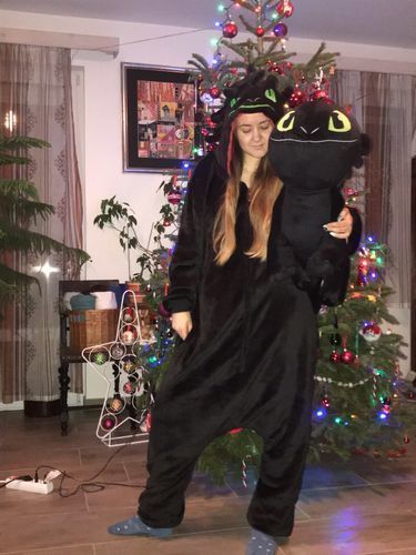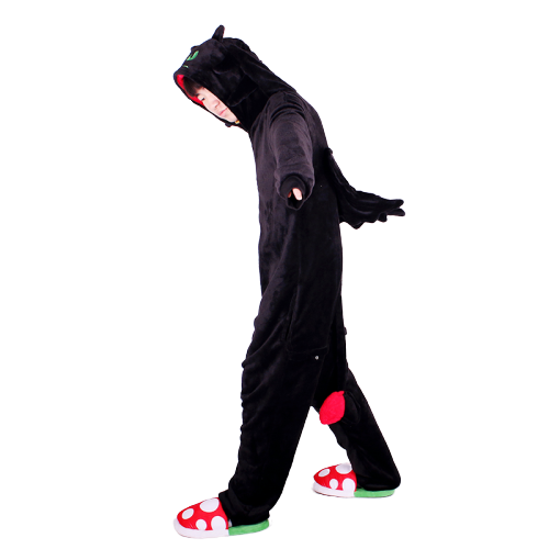 Laissez-vous séduire par notre combinaison pyjama Krokmou adulte, inspirée de l’univers envoûtant de DreamWorks. Ce pyjama intégral évoque avec fidélité l’iconique dragon noir, Krokmou, héros de la saga « Dragons ». Idéale pour celles qui rêvent d’évasion, cette tenue cocooning transforme vos soirées en véritables instants d’aventure féerique. Avec ses manches longues élastiquées elle enveloppe le corps de chaleur tout en réveillant l’imaginaire.